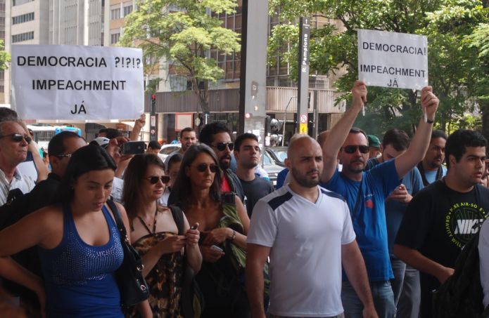 Ao sair do protesto, havia cerca de 500 pessoas na Avenida Paulista. Faltava pouco para as 16h. Mais pessoas chegavam dos metrôs Trianon-Masp e Consolação para se juntar à concentração. Todos eles se encaminhando para pedir o impeachment da candidata reeleita democraticamente, a presidente Dilma Rousseff.